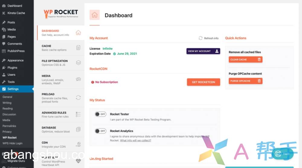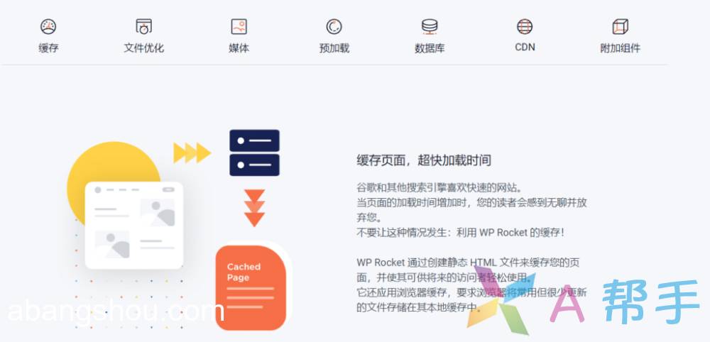 WP Rocket是一个缓存插件,可有效消除内容更改时重新加载页面的需要,从而加快 WordPress 网站加载速度并提高性能。WP Rocket 将在后台缓存单个帖子、页面和自定义帖子类型,以便再次查看时立即加载。
