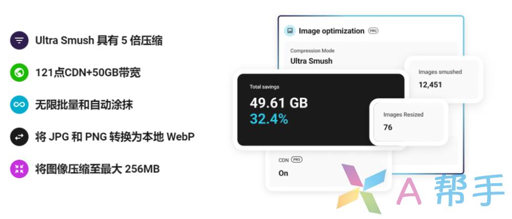 WP Smush Pro是一个功能强大的WordPress图片优化插件,有助于提高网站的速度和性能。它提供先进的图像压缩技术,可以减小图像的大小同时保持其质量,从而实现更快的页面加载时间和提高搜索引擎排名。
