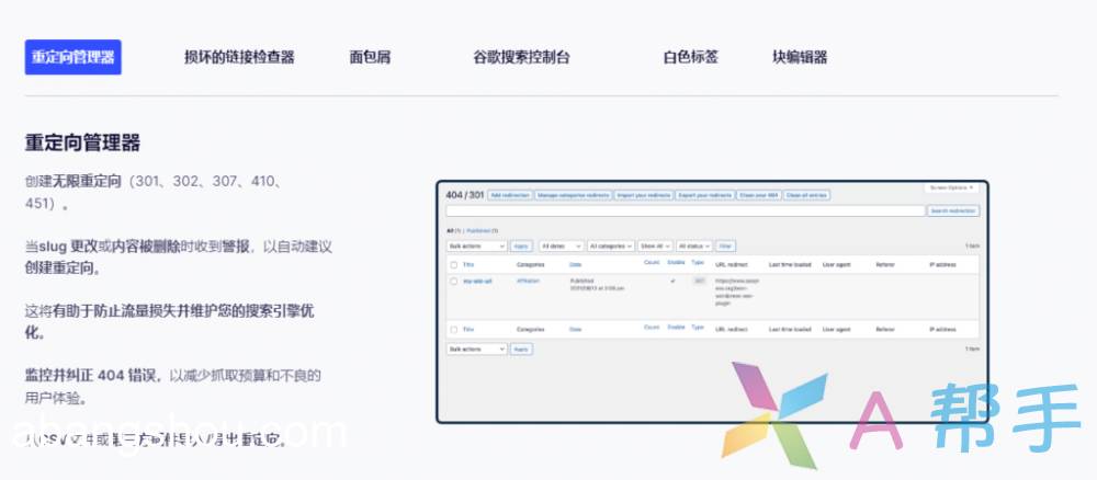 - 无限重定向,可创建 301、302 和 307 重定向,并从/导入到 CSV 文件