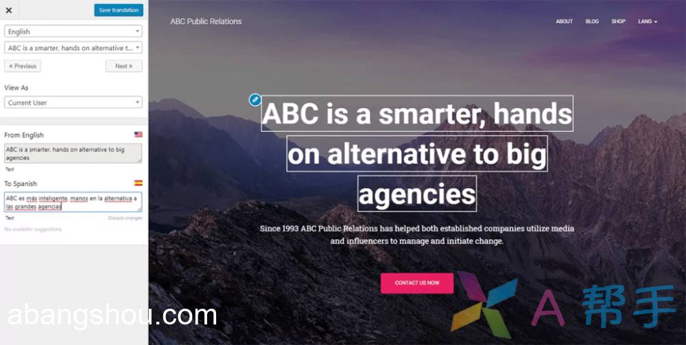 TranslatePress专为WordPress构建,并且是一个GPL、自托管的插件,使您完全拥有对翻译的所有权。这是创建双语或多语站点的最快方式。