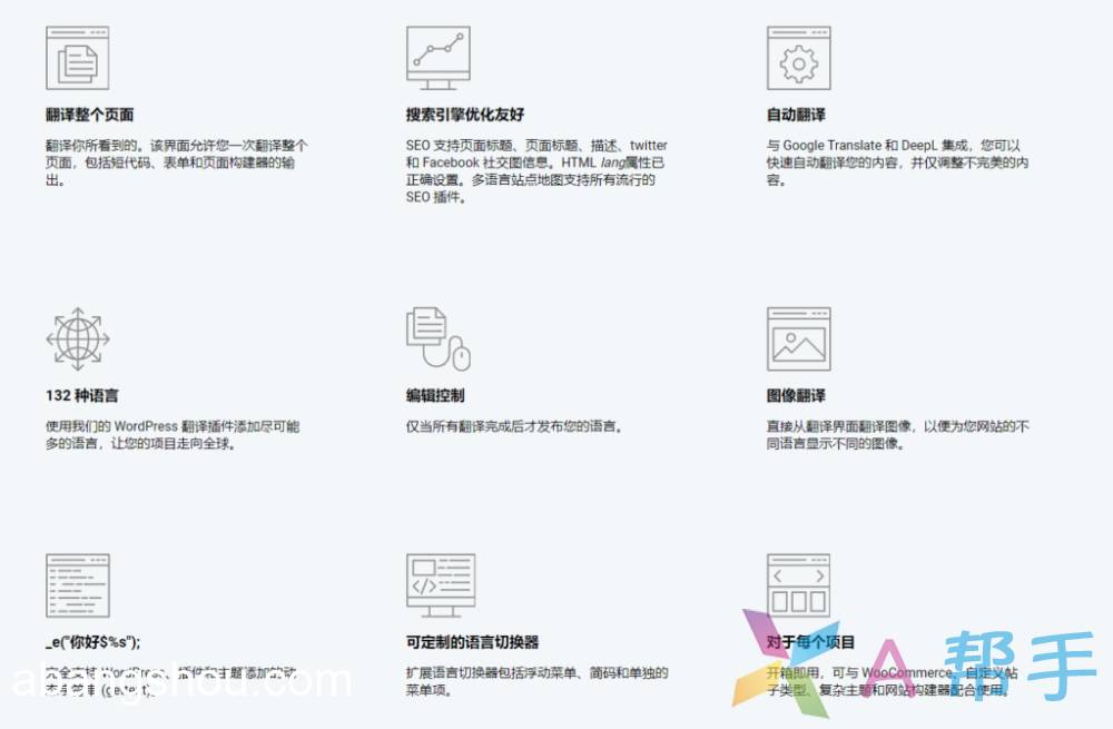 - SEO包:启用对元信息的翻译,如页面标题、描述、URL slug、图像alt标签、Twitter和Facebook Social Graph标签等,以改善多语言SEO并增加流量。