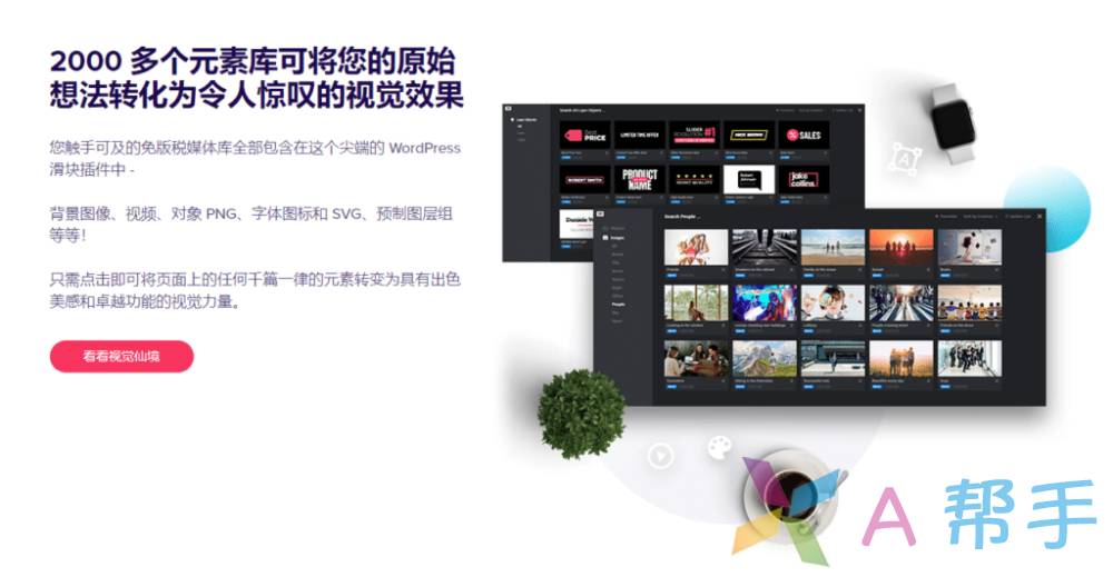 - 2500+元素对象库,包括字体、图标、图像、视频等