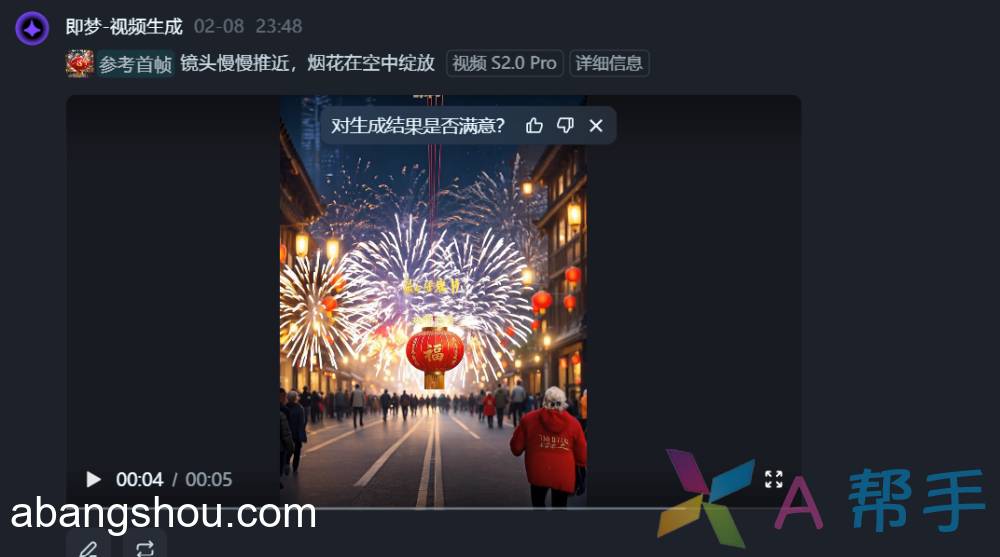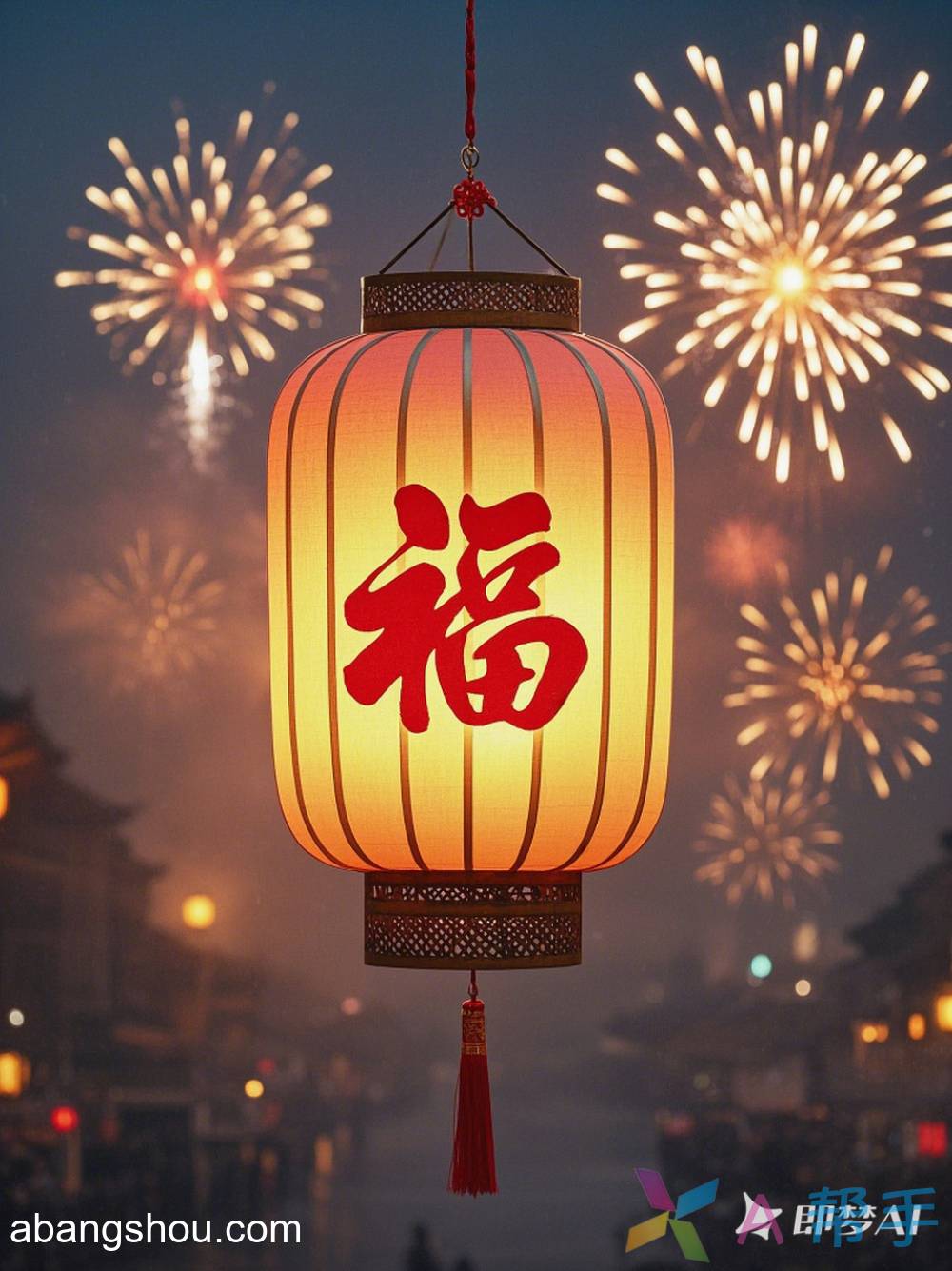 提示词:恭贺新春,中国传统春节元素,灯笼、烟花,背景中轴移动拍摄,灯笼出现“福”字,纪实,32K