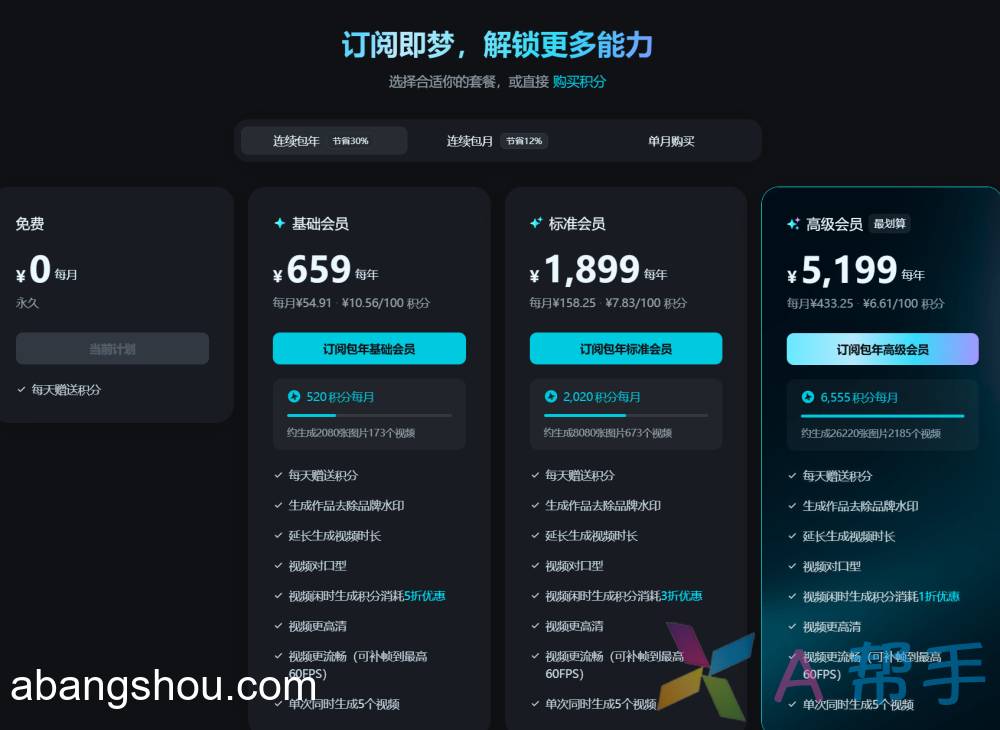• 高级会员:每月649元,作为最全面的订阅选项,赋予用户最多的积分和高级功能。