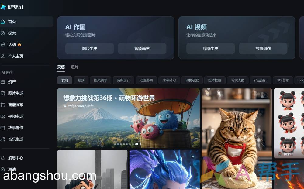 - 选择功能:登录后,可以根据需要选择不同的创作功能,如AI图片创作、视频创作等。