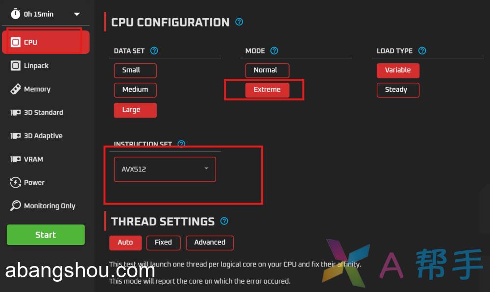 ①CPU:OCCT和CPU:Linpack专为测试CPU性能而设计。