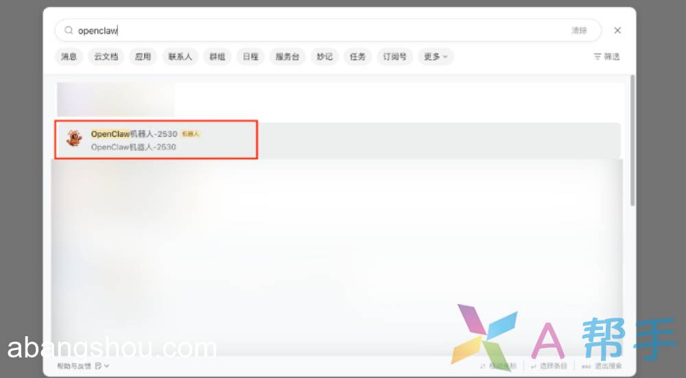 进入飞书的搜索栏,输入机器人名称,找到自动创建的机器人;点击该机器人,即可进行对话。