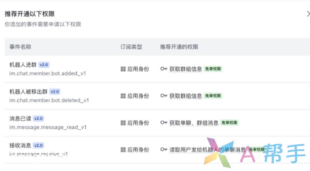 主要包括“消息已读”、“机器人进群”、“机器人被移出群”。