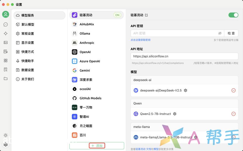- ☁️ 支持主流 LLM 云服务:OpenAI、Gemini、Anthropic、硅基流动等